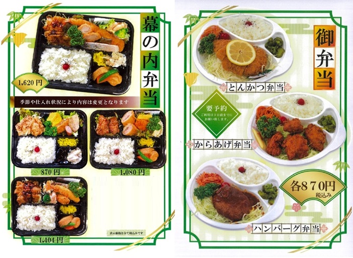 | 幕の内弁当 | 上限なし | 1,404円 |